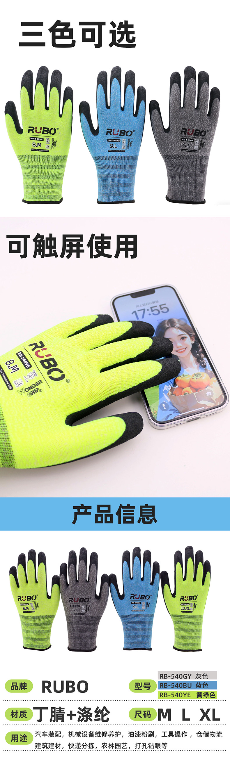 RUBO通用丁腈触屏作业手套